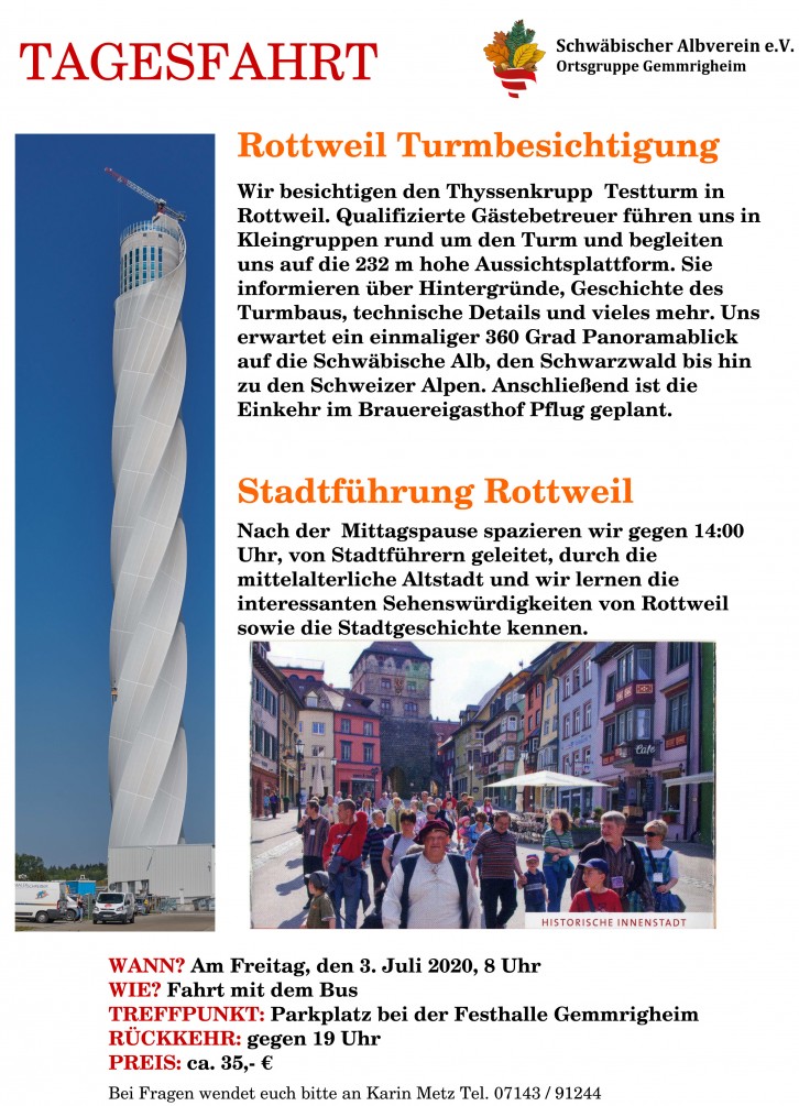 am 3. Juli zum Testturm Rottweil abzusagen.