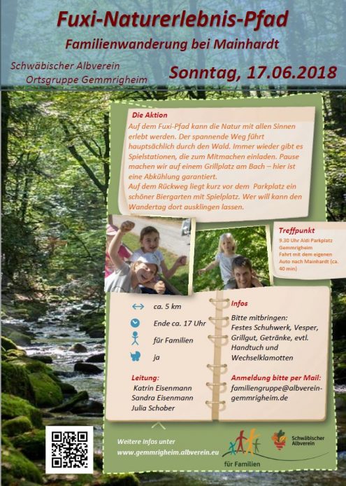 Am Sonntag, den 17. Juni veranstaltet die Ortsgruppe Gemmrigheim eine Familienwanderung auf dem Naturerlebnis-Pfad bei Mainhardt.