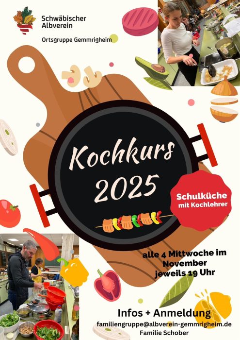 Kochkurs Di., 25.11.2025, Organisation: Julia und Steffen Schober Tel.: 07143 / 95 92 900 Uhrzeit: 19:00 - 22:00 iCalendar Mit dem Laden der Karte akzeptieren Sie die Datenschutzerklärung von Google.Mehr erfahren Karte laden Google Maps immer entsperren zur Übersicht