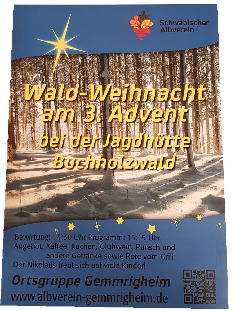 Zum Jahresschluss veranstaltet der Schwäbische Albverein Ortsgruppe Gemmrigheim auch in diesem Jahr am 3. Advent Sonntag,